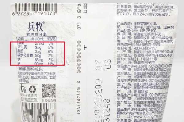 下图是兵牧纯牛奶的营养成分↓