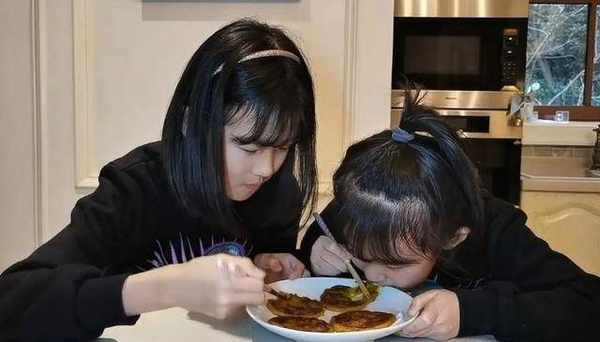 前段时间,鲍蕾拍了一段女儿们在家做南瓜饼的视频,分享给大家。贝儿和小叶子姐妹俩给大家展示了整个做南瓜饼的过程,一边做着一边还有语音讲解,“首先要把南瓜蒸熟,搅碎……”贝儿说。贝儿讲解之后,小叶子紧接着开始说,“喜欢吃甜的话,可以加点糖,”在加了糯米粉之后,姐妹俩开始一起搅拌,然后捏成一个一个的丸子,再按成饼状,放到锅里,开始煎……很快,一盘南瓜饼就出炉了,这几个南瓜饼被撑在一个盘子里,贝儿和小叶子站在一起开始吃起来,自己亲手做的南瓜饼是不是特别好吃?