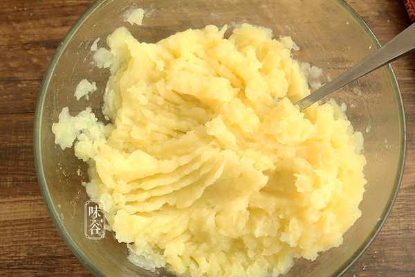 【做法】:1、先把土豆去皮洗净,切成块或者片状,入锅里蒸15分钟,筷子能够插进去就表示熟了,蒸熟的土豆捻成泥。