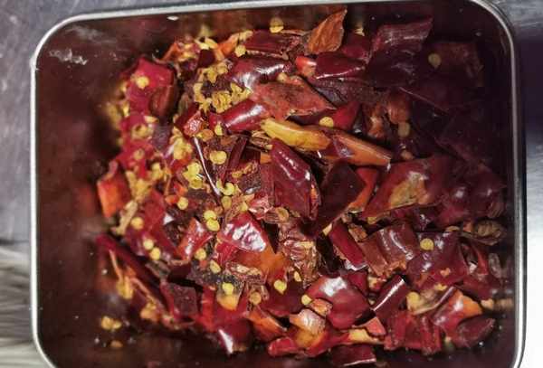 材料:干红辣椒少许、葱少许、大蒜、水曲柳、白胡椒粉