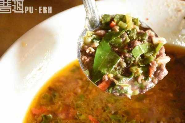 在傣家食物中,我曾有幸喝过一种类似于羹汤的傣味。里面有肉末、芹菜、苦茶以及各种刺激性极强的香料。一口下去,辛味、辣味、香味以及微微的苦涩味混杂在一起,喝完一碗,浑身舒坦,额头微微冒汗。傣族的贝叶经里曾经讲到傣族先民曾给游历的佛陀布施食物和茶汤,也不知道佛陀饮下的那一碗茶汤是不是这个配方。祖先留下的风味,也是祖先经验在冥冥之中的庇佑。