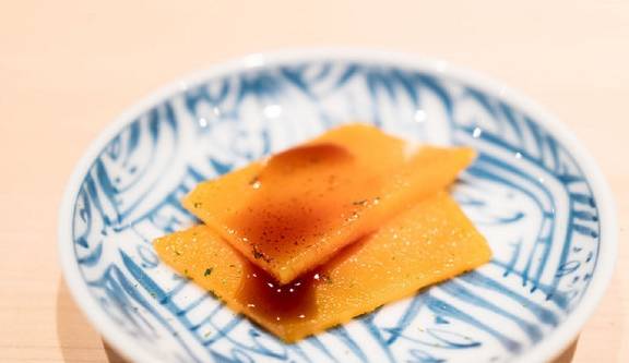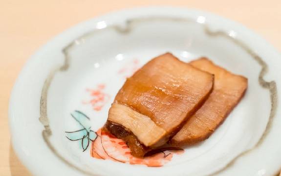 明虾及新子(Shinko)也不错,不过随后的沙丁鱼、沙钻鱼(Kisu)、春子鲷(Kasugo)、疣鲷(Ebodai)、新乌贼(Shin-ika)及竹荚鱼(Aji),风格令人百思不解。以各种腌漬、熟成及浸泡处理,令鱼身变得很软,充斥着弱势感,不是被锐利的醋饭吞没,便是打起架来。问师傅何解鱼料软乎乎,他说是其独有手法,说不定是故意营造的效果,只不过对牛弹琴罢了。