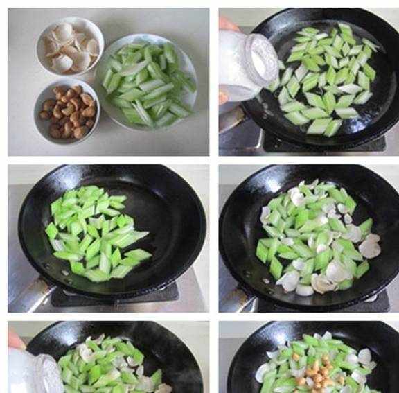 原料:西芹2片百合2个腰果1小碟油盐适量