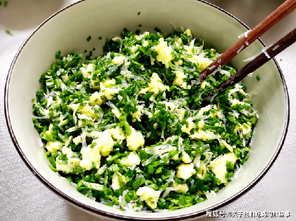 韭菜摘洗干净,沥干水分后切成碎末,加入一勺食用油拌匀。鸡蛋打入碗中,加盐搅散。粉丝用清水泡软,沥干水分后切碎。起锅烧油,八成热时倒入鸡蛋液,大火煎熟后炒成碎块。