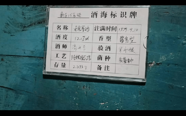每一个酒海都有标识牌,我特别留意这些标识牌,上面写有酒的名称、酒度、香型、酒师、验酒、注满时间等信息,八十年代的酒海较多。挂着大红花的是1979年酒海,格外引人注目,标识牌注有多菌种、纯粮固态工艺,酒师、验酒师的名字都有注明。再往里走,看到一个剖面的酒海,数百层的裱糊,一目了然。我的心中,不由得赞叹酿酒前辈的工艺和智慧。