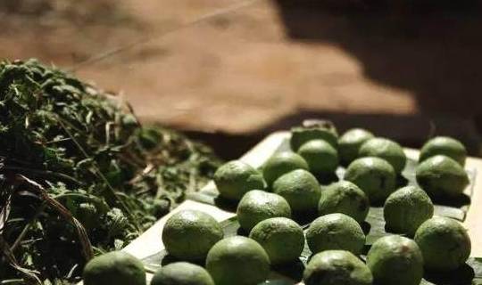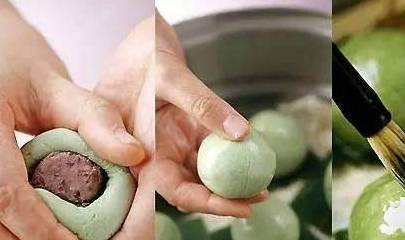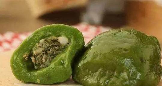 “青草”可以是鼠曲草、艾叶草或着麦青,家里一般春天的是候自己去田野找艾叶草。在水里焯一下,碾磨成泥。面团是糯米粉的(可以掺入一些粳米粉);艾草、面团混合调好,色彩透着春的气息。