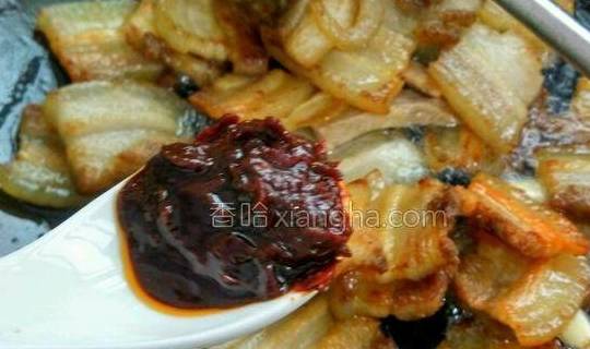 7.加入蒜头、白糖、豆瓣酱翻炒均匀出香味