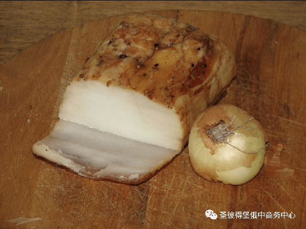 萨洛是俄罗斯的传统小吃也是非常具有特色的小吃之一,因为以前杀猪之后因为没有冰箱保存,所以用盐腌制,搭配蒜黄瓜和和黑面包一起吃,是俄罗斯最受欢迎的小吃之一。