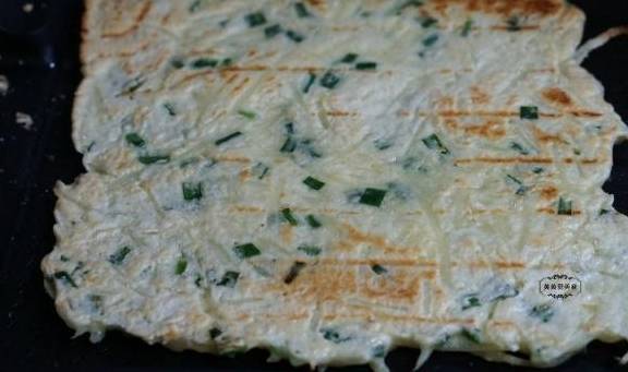 9、将面糊摊平摊薄,烙至两面金黄的状态就可以了。