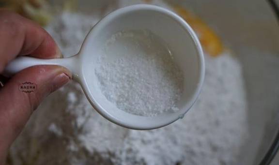 4、倒入适量的面粉和少许的食盐。