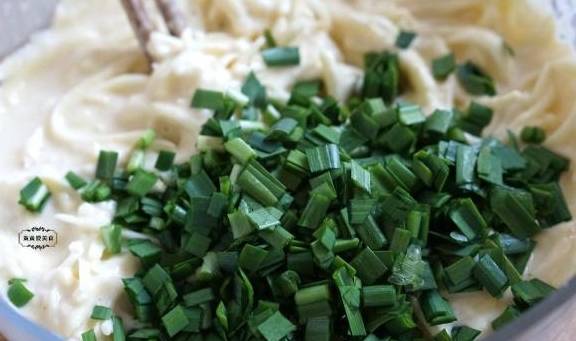6、加入韭菜末,冬季的韭菜比较嫩,记得一定要最后加。