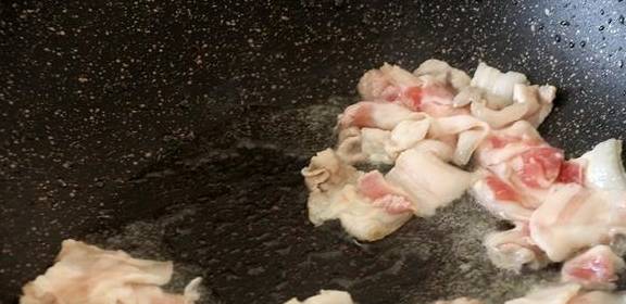 倒去锅内多余的油,留一点油就可以了,把切好的肉片倒入锅内翻炒。