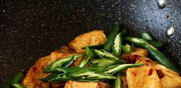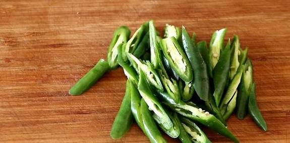 最后倒入切好的青尖椒,炒至青尖椒断生就可以了。