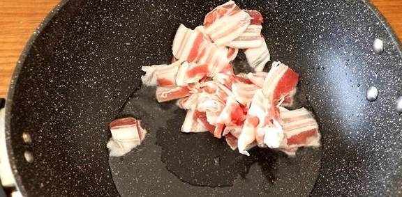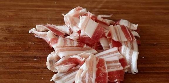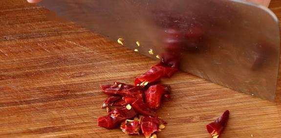 大蒜先拍扁再切末儿,红干辣椒切小段儿,五花肉切薄片。
