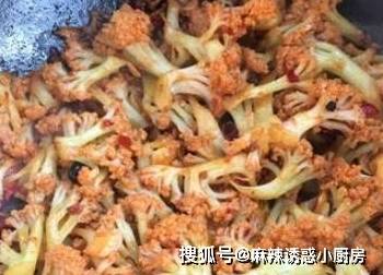 浸泡大概10分钟。锅中加入适量的水,同时再加入少量的盐,大火煮开之后,将浸泡后的发在放入锅中进行焯水5分钟。之后再将焯水后的花菜放入凉水中清洗一下,锅中加入适量的油,然后再加入干辣椒,葱姜蒜炒出香味,之后再加入花椒和豆瓣酱,然后再加入洗干净的花菜。