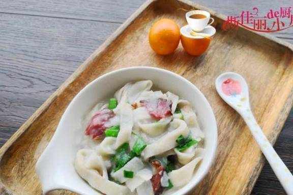 制作:豆丝放入冷水锅中煮,微微煮软后加入腊肉;煮上2分钟后加入蒜白进去煮;5.加入少许盐和胡椒粉调味,再放入青蒜叶,拌均匀,变色后关火。