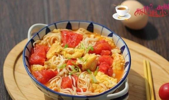 制作:鸡蛋加入少许盐打散备用;烧热锅放入适量的油,倒入蛋液煎至定型后划散成小块,先盛出;另烧一锅水,将面条入锅煮至面条六成熟;热锅少许油,先下入番茄块煸炒,微微出汁后加入水炖煮,放入鸡蛋,再加入少许生抽、盐和胡椒粉调味;将煮至半熟的面条捞出放入汤汁中继续煮至八成熟,捞出来盛入碗中即可。