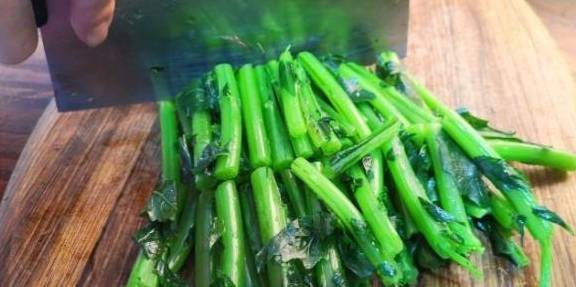 第二:锅内加水烧开,加入适量的盐,滴两滴食用油,放入萝卜缨子的茎焯一下水。水再次烧开后,将菜捞出,捞入凉水内过凉(这样菜吃起来会更脆)。然后,捞出控水,切成小段备用。