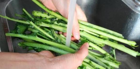第一:拿回家的萝卜缨子,把叶子去掉,只要萝卜缨子的茎部,如果茎特别粗老的话也去掉,只留嫩的部分。然后用清水洗两遍。现在天气特别冷,没有虫子,萝卜都不打药,所以不用担心有农药残留。