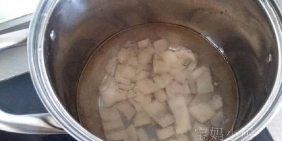 3煮锅加水,加少许植物油和盐。开锅后,放入莲藕片焯水,再次开锅后捞出,放入凉水盆中过凉备用