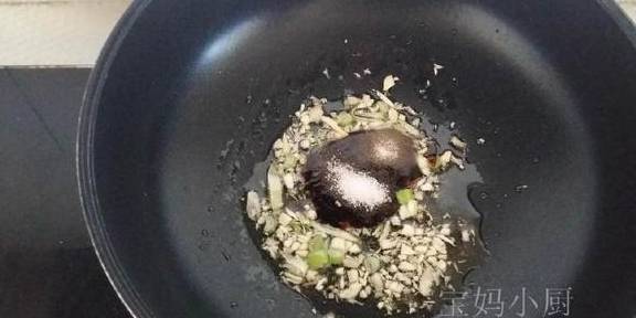 5炒锅加植物油,油温3成热,下葱蒜末炒出香味,改小火,加蚝油、白糖、盐,开大火翻炒均匀