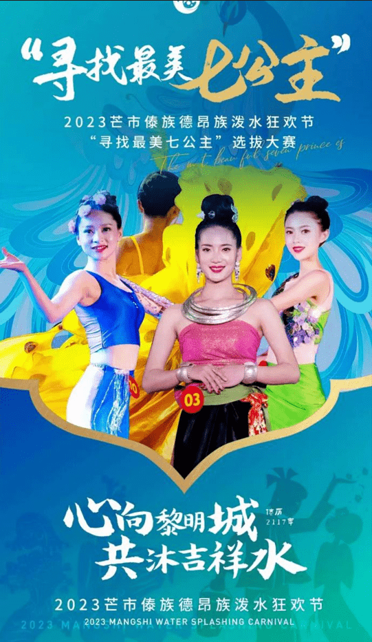 “七公主”源自傣族泼水节的传说,在远古时期有七位机智勇敢的姑娘,取圣水杀死作恶多端的“火魔”,惩恶扬善的故事。“七公主”的形象即代表了淳朴热情、聪明善良的女性,只要是符合条件的女生都可以报名参加,通过海选的女生还可以进入“最美七公主”训练营,接受非遗文化培训,包括傣族剪纸、傣族陶艺、傣族织锦等。最终评选出来的“最美七公主”不仅有丰厚的物质奖励,还会成为泼水节形象代言人。