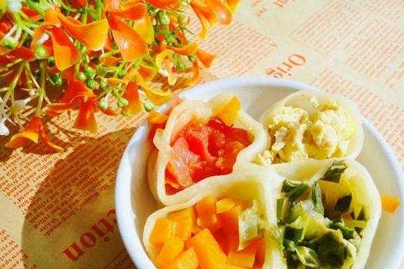 准备好四种饺子馅,瘦肉洗干净用绞肉机绞碎,放盐、酱油、油、拌均腌制。胡萝卜饺子馅:胡萝卜切丝碎,放腌制好瘦肉拌均;大白菜饺子馅:大白菜洗干净,放不粘锅炒去水分,切碎,放腌制好的瘦肉拌均;蛋黄饺子馅:蛋黄放不粘锅中放盐煮熟,拌碎,不需要放油,香菇去蒂,切碎末与腌制好的瘦肉拌均即可;300克的面粉,加适量的水拌均,揉成光滑的面团;面团分成小团,擀成大小相同的饺子面皮;饺子皮折叠成“田”字;放入不同的四种馅,放入蒸锅中,蒸25-30分钟。PS:火的大小不同,蒸熟的时间略有差异,根据自己的锅与火而定。