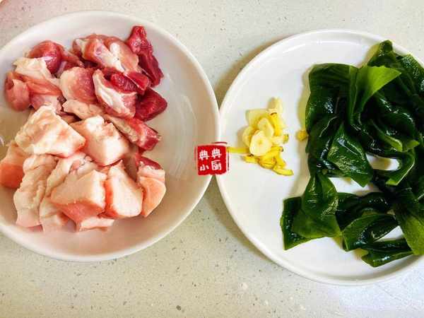 海带结可以放水里泡一下,反复冲洗几遍,猪肉切成片备用。