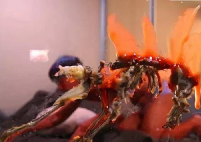 随后,泰国小哥哥挤出来了很多的番茄酱,把这些炸鸡的骨头全部都固定住了,看上去好像有了点模样呢。和他给出来的原图一对比,这一次的作品也是很不错的呢,而且估计没有几个人是会想到这个方法的吧?