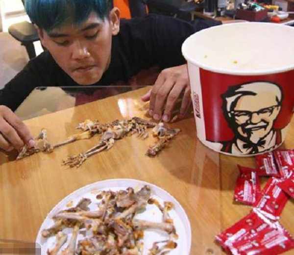 泰国小哥哥这一次直接买了一大桶的炸鸡,看上去了真的很香呢!不过,他对着X这桶炸鸡又开始露出谄媚的微笑了,看来这是要做点大事啊!他开始狼吞虎咽,直接把整桶炸鸡全部都吃光了,但是这个时候会他用剩下的骨头在桌子上摆造型,这到底是在做什么呢?