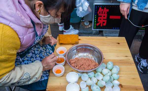 有“担担”之说,起源于南平市顺昌仁寿乡。每逢除夕,顺昌农民都有做“担担”的习俗,也是招待贵宾必备的菜肴之一。每当店铺开张,门口就会有很多游客围观。但出于对味道的好奇,人们更好奇“酿鸡蛋”的过程。