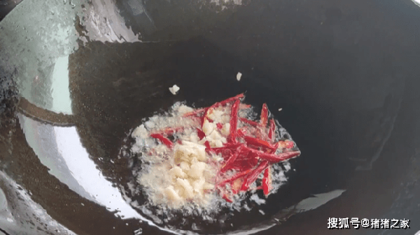 3.把锅烧热,加入一勺食用油,油热后加入适量的花椒,开小火把花椒的香味给它炸出来。然后用漏勺把花椒捞出,接着把干辣椒和蒜末放进去,炒出香味。