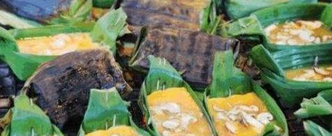 这样可爱的小吃是不是引起了你们的注意呢?这种就是泰国著名的小吃香兰叶鸡蛋烧了,他们的鸡蛋烧就是在这样的香兰叶上面做成的,而且都还是用炭火烤制的,里面有蟹肉还有蘑菇的香味呢!