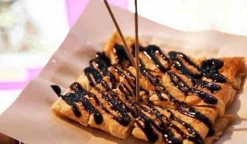 去到泰国的话一定不能少的就是这种香蕉煎饼了,你们去到泰国就会看到泰国的街边基本都是卖香蕉煎饼的,不过他们的香蕉煎饼是真的好吃,好吃的香蕉煎饼上面还淋上满满的巧克力酱是非常满足的,味道是特别香甜的。