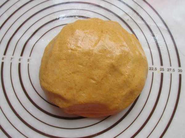 第二步:南瓜晾凉後,加入適量的糯米粉和成軟硬適中的麵團。