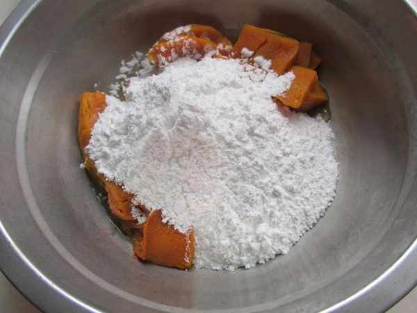 2,南瓜和糯米粉的比例可以視情况來添加,因為南瓜蒸出來以後水分的大小會有區別。