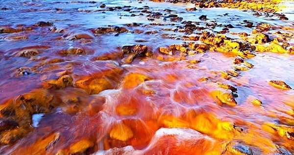 由于人们不断地在此处进行开采,河流也因此受到了污染。各种矿物质元素溶到水里之后,慢慢地导致了河流水变成了红色并显酸性,河里的水PH值甚至达到了2。
