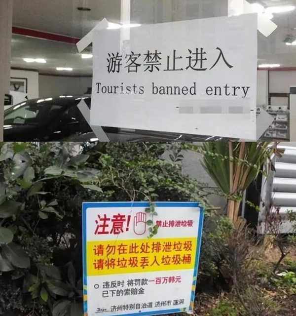这种略带讽刺的指示牌,可以说看出去外人对我们人另类的看法,根本就没有和其他地方的游客一视同仁,要知道国外人来我们旅游,也没有单独用“韩语”来标识这些?要知道我们游客撑起了国外旅游的半边天,大部分国外的旅游经济是我们人支撑起来的。