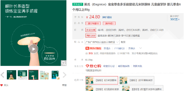 京东商城上秋田满满婴幼儿米饼原味32g宝宝零食儿童磨牙棒饼干非油炸无添加食用盐,26.90元。