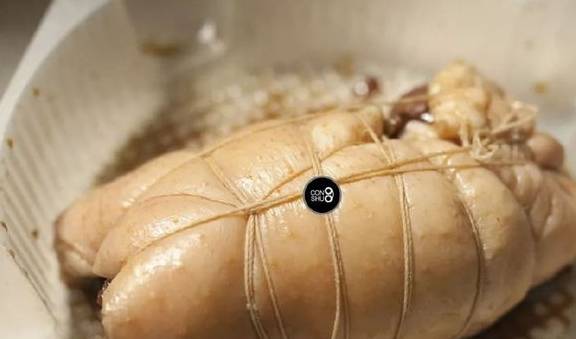 食盐……1茶匙;料酒……1汤匙;酱油……2茶匙;花椒油……1茶匙;丁香……4-5颗所有调料混合,均匀抹在鸭肉上。腌制30分钟。将鸭皮朝外,鸭肉卷成圆筒状,用棉线缠绕裹紧。