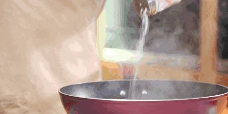 3.向锅中倒入热水,煮至沸腾后倒入海带