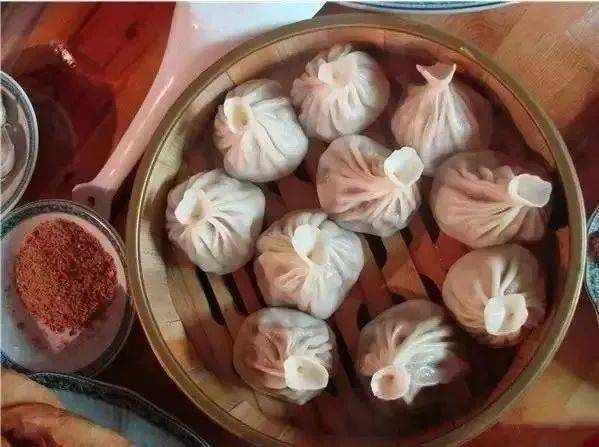 在甘南,有一种别具风味的民族面食——藏包子。甘南藏包子,又称“卓华包子”,因形如牛眼睛,又有“牛眼睛包子”之称。它外皮雪白薄亮,透过包子皮,里面的馅子清晰可见,只见肉如玛瑙,菜似翡翠,红绿相间,煞是好看!吃时需先从顶端吸吮包子内的油水,然后食之。