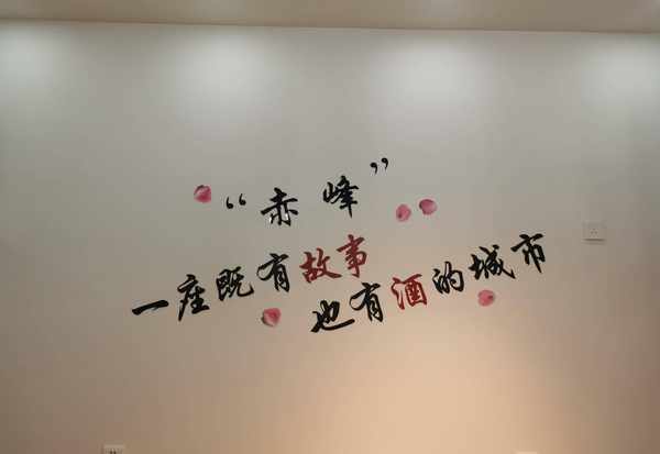 墙上的字也很好玩:“赤峰”一座既有故事,也有酒的城市。