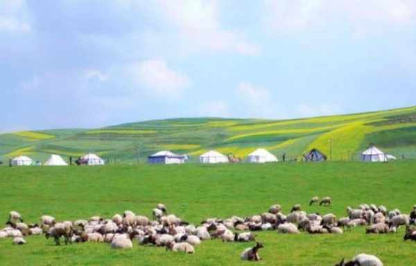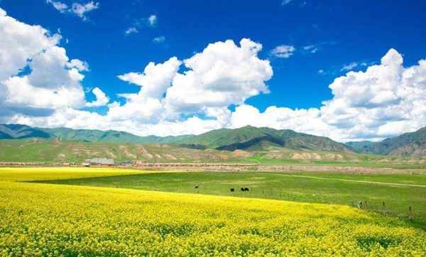 甘南草原主要分布在玛曲、夏河、泸曲三县,历来是藏族人民的天然牧场。一望无际的草原上鲜花盛开,牛羊在草原上吃草,帐篷点缀在草原上。
