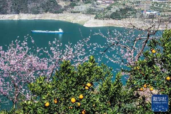 春满三峡,盛开的鲜花与成熟的春季脐橙在三峡库区湖北省宜昌市秭归县沿江两岸形成一幅幅美丽画卷。近年来,该县在美丽乡村建设中,因地制宜,发展脐橙种植40多万亩,并在脐橙园里套种桃树、李树等果树。
