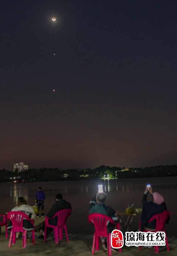 2月23日,琼海嘉积,万泉河上空现“三星连珠”天象。