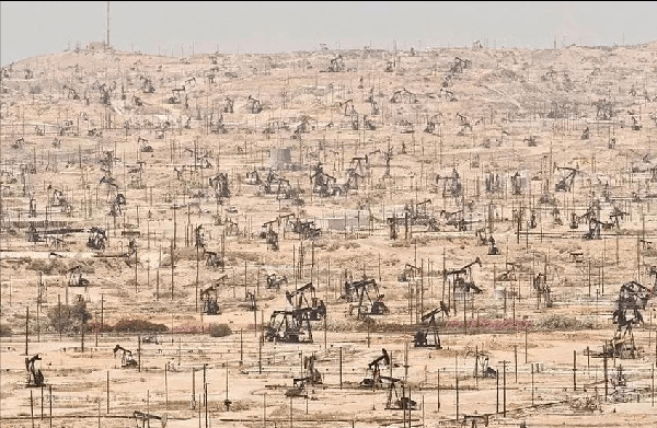 日益枯竭的油井是人类破坏生态的又一明证。图为加利福尼亚KernRiver油田