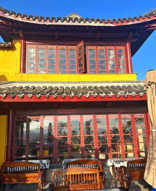 2009年重建,现已改为百味斋。我绕楼一周,找不到二楼入口。询问工作人员,得知楹联早已不复存在。