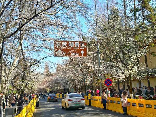 时值三月中旬,鸡鸣寺路樱花盛放,南京人称之为樱花大道,大道直通南京明城墙解放门,门外便是玄武湖。