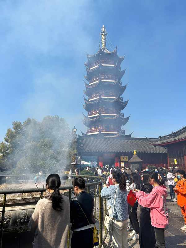 与撞“许愿钟”相比较,敬香的人更多,游人可免费自行取香。有趣的是敬拜的方向不一,有的面向香炉,有的面向药师佛塔,看起来有点乱。